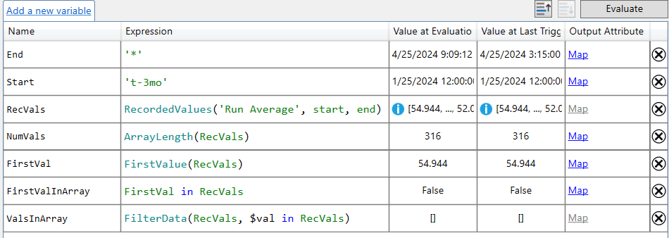 We have many calculations following this basic pattern - take recorded values of one attribute, apply a filter (using FilterData), then retrieve values of a second attribute at the filtered timestamps of the first attribute.